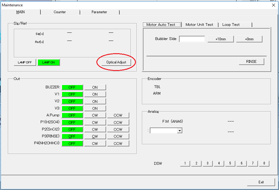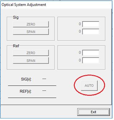 4) Next select the "Auto" button. After selecting the instrument will do an auto adjustment to the optics system, please do not turn the instrument or attempt to exit the software while it is performing this function.