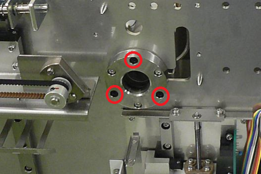 Unscrew the (4) knurled screws holding the sample heating tube retainer and the gold trap cover, and remove the retainer and the cover.